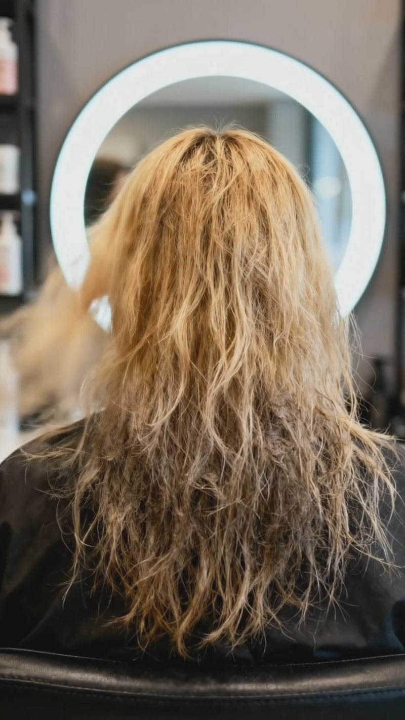 Pre Blonding: Wash hair with clarifying shampoo. Apply step 1 for 10-20 min. Rinse. Apply step 2 for 10-20 min. Rinse. Apply step 3, detangle & style as needed. Post Blonding: 5ML step 1, 10ML step 2, and 5ML of step 3, mix all together and apply on double processed hair before toning.
